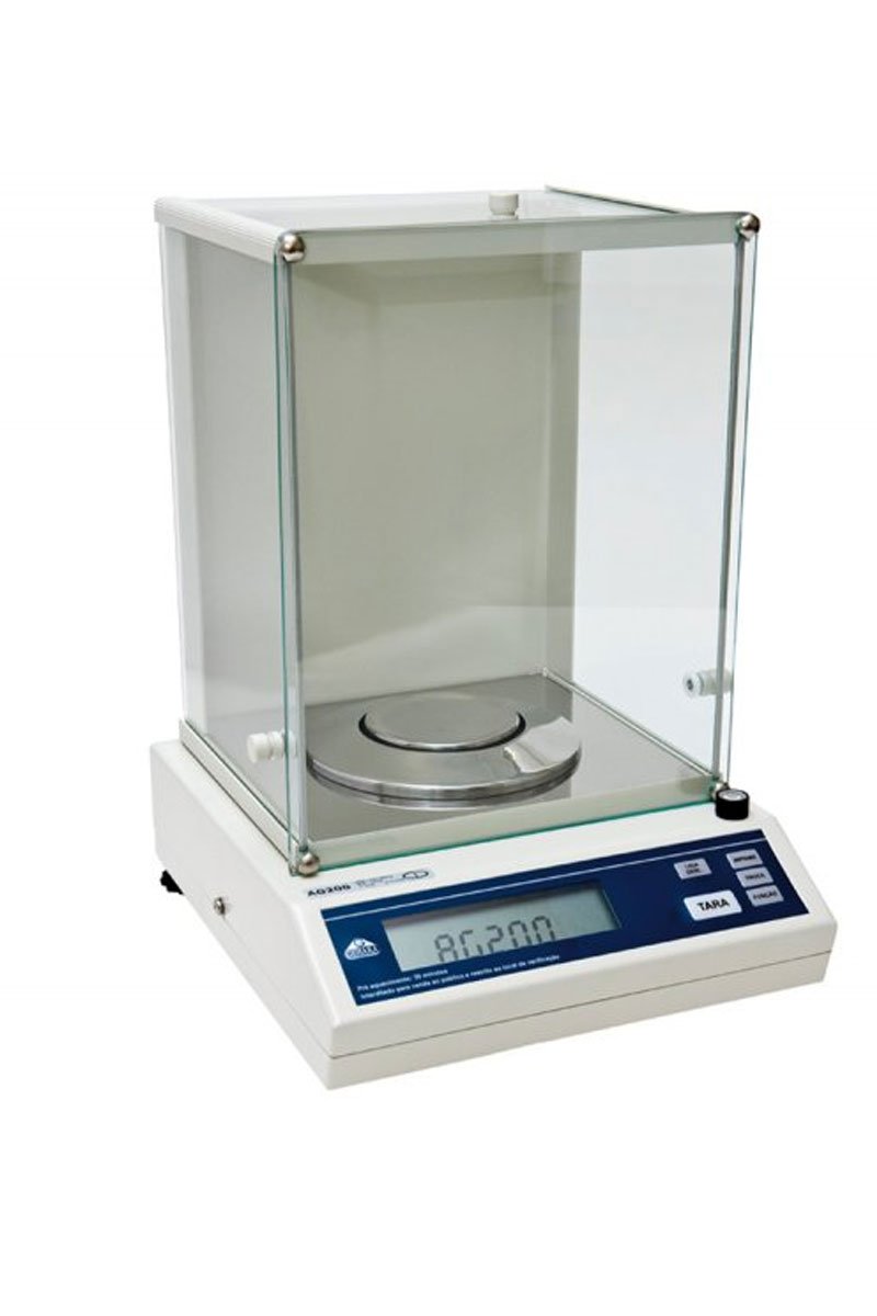 Balance for weighing materials with accuracy of ± 0.0001 g, utilized in researches, production or quality control. It can be utilized in applications such as determination of density, performed by Arquimedes Principle (floating method), where an immerged body in a fluid apparently loses his weight in the same proportion of the weight of the fluid, that is shifted. This method is appropriated to determine the density of solids, viscous, pasty and liquid substances.